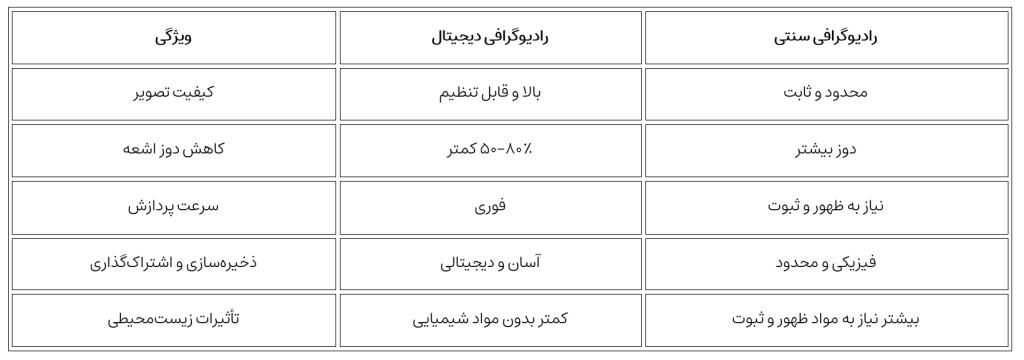 مقایسه رادیوگرافی دیجیتال و سنتی
